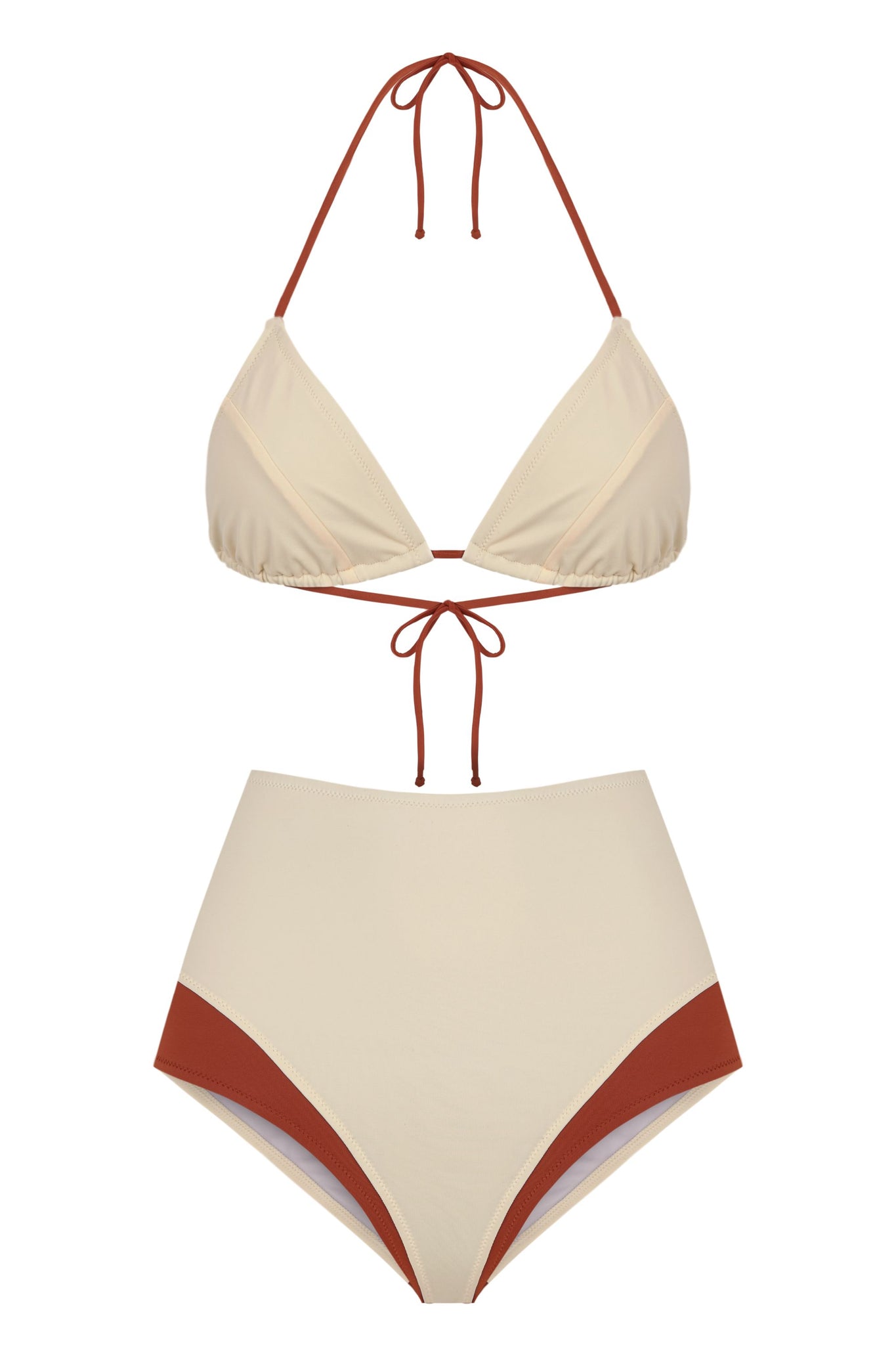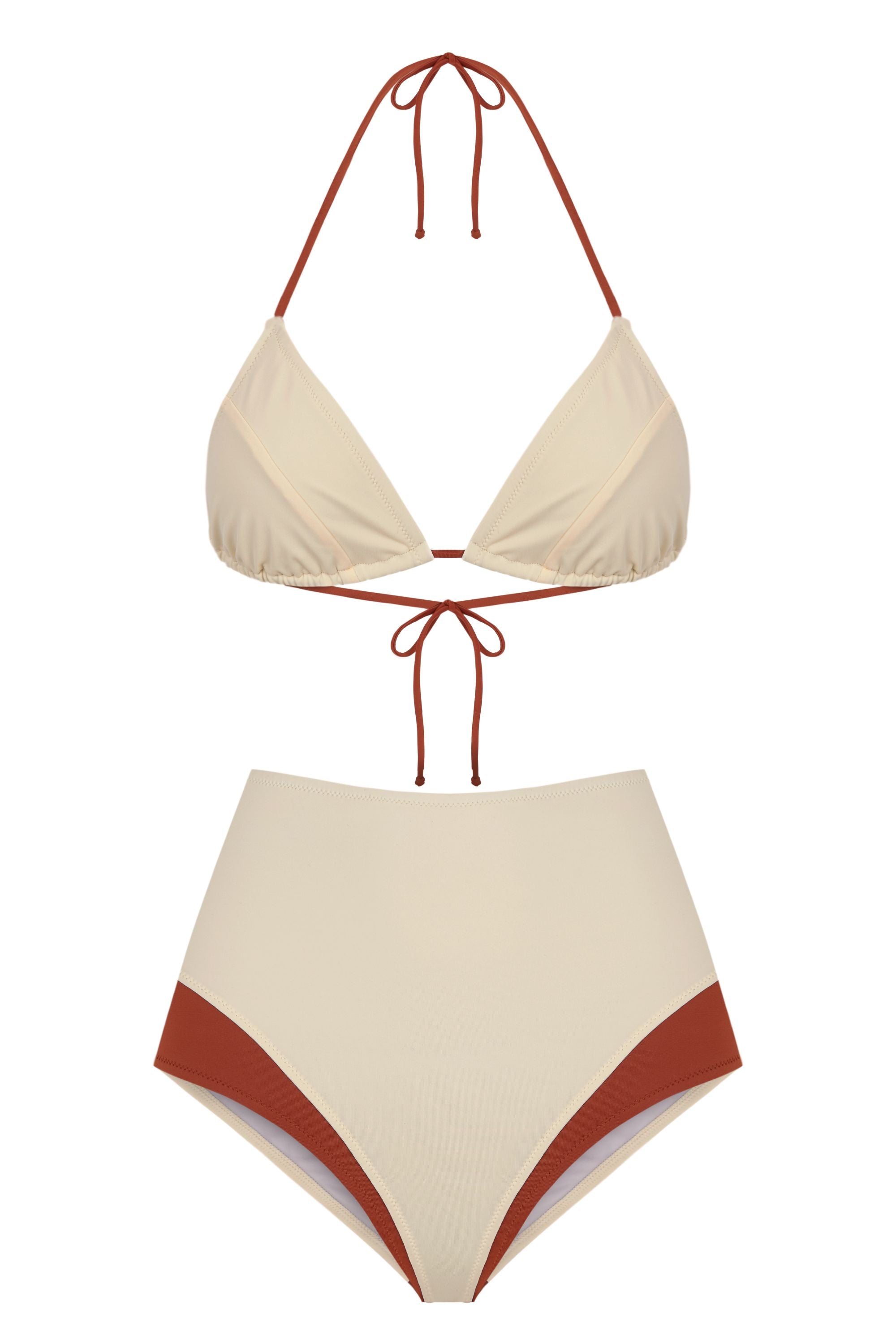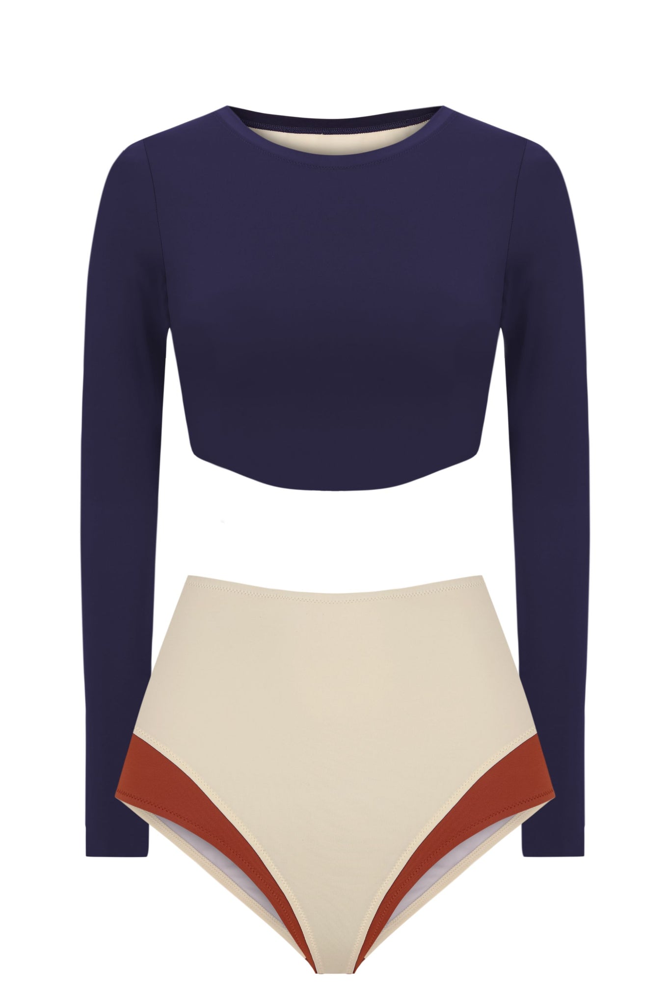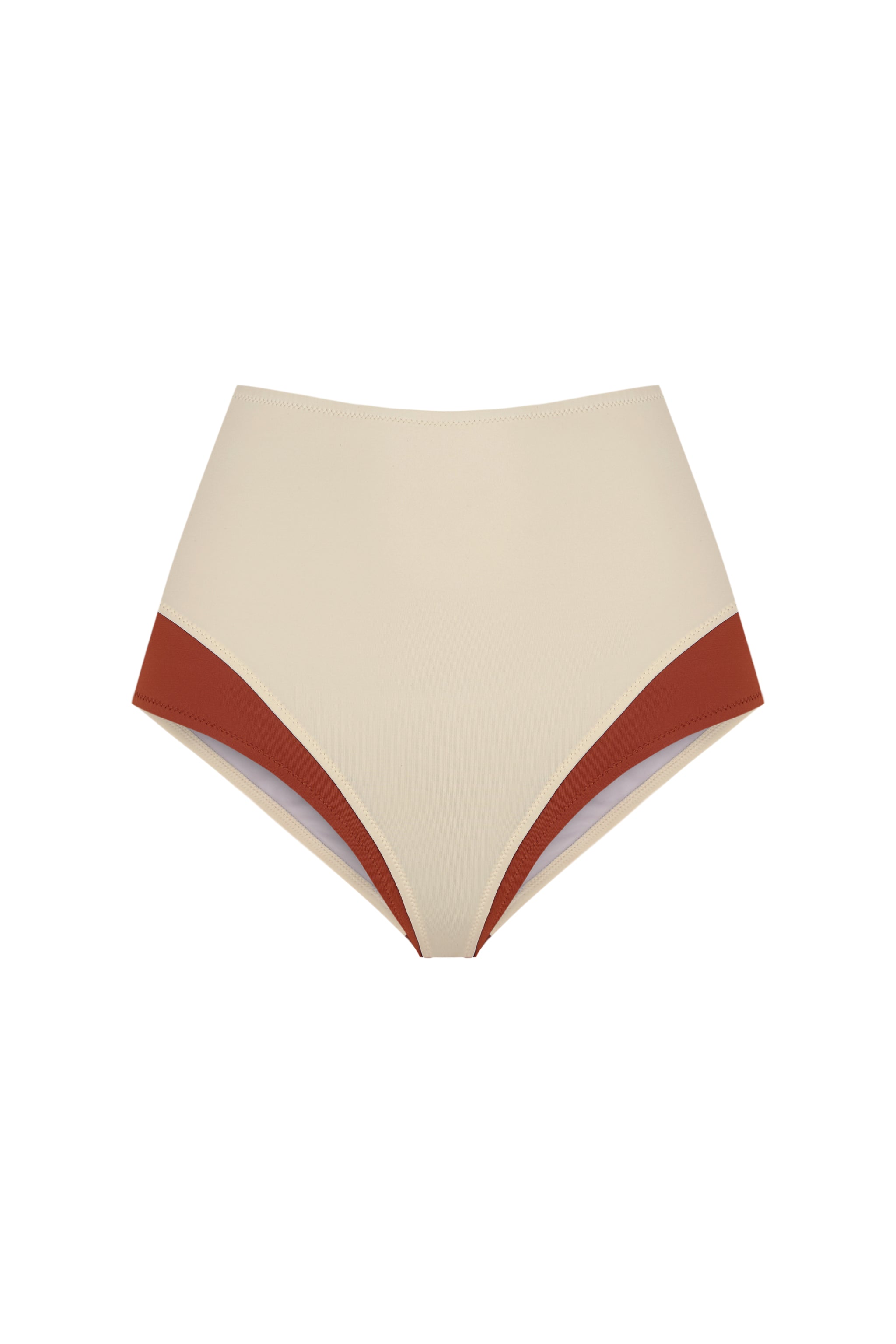 High waisted bottom with contrast panels that creates the illusion of layering.