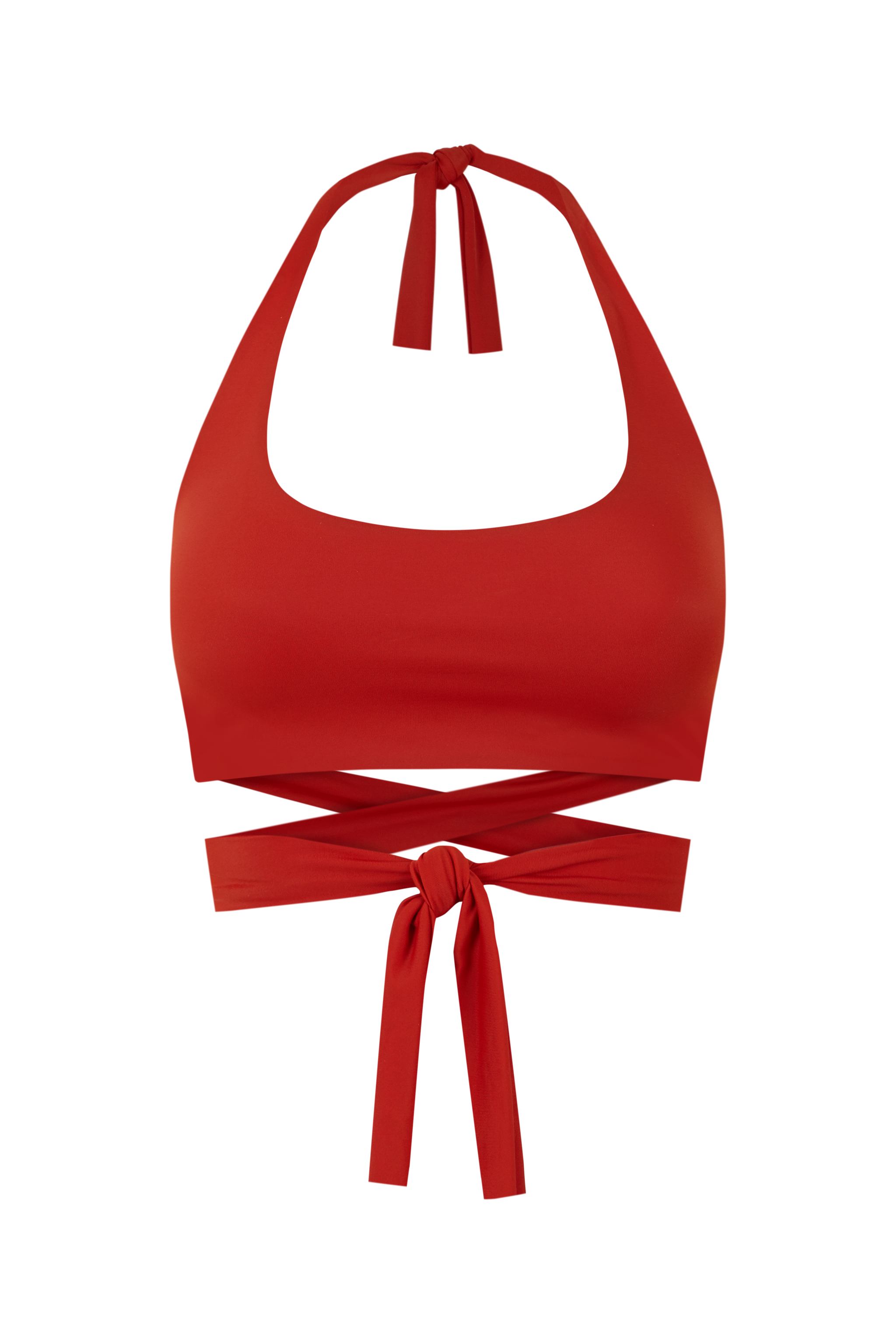 It ties at the front and can be styled two ways: wear it flat for a minimalist look or with a twist to create a different neckline and varied support. Its seamless finish and double-layered construction provide a smooth, sculpted look without padding or cups, ensuring a natural feel.