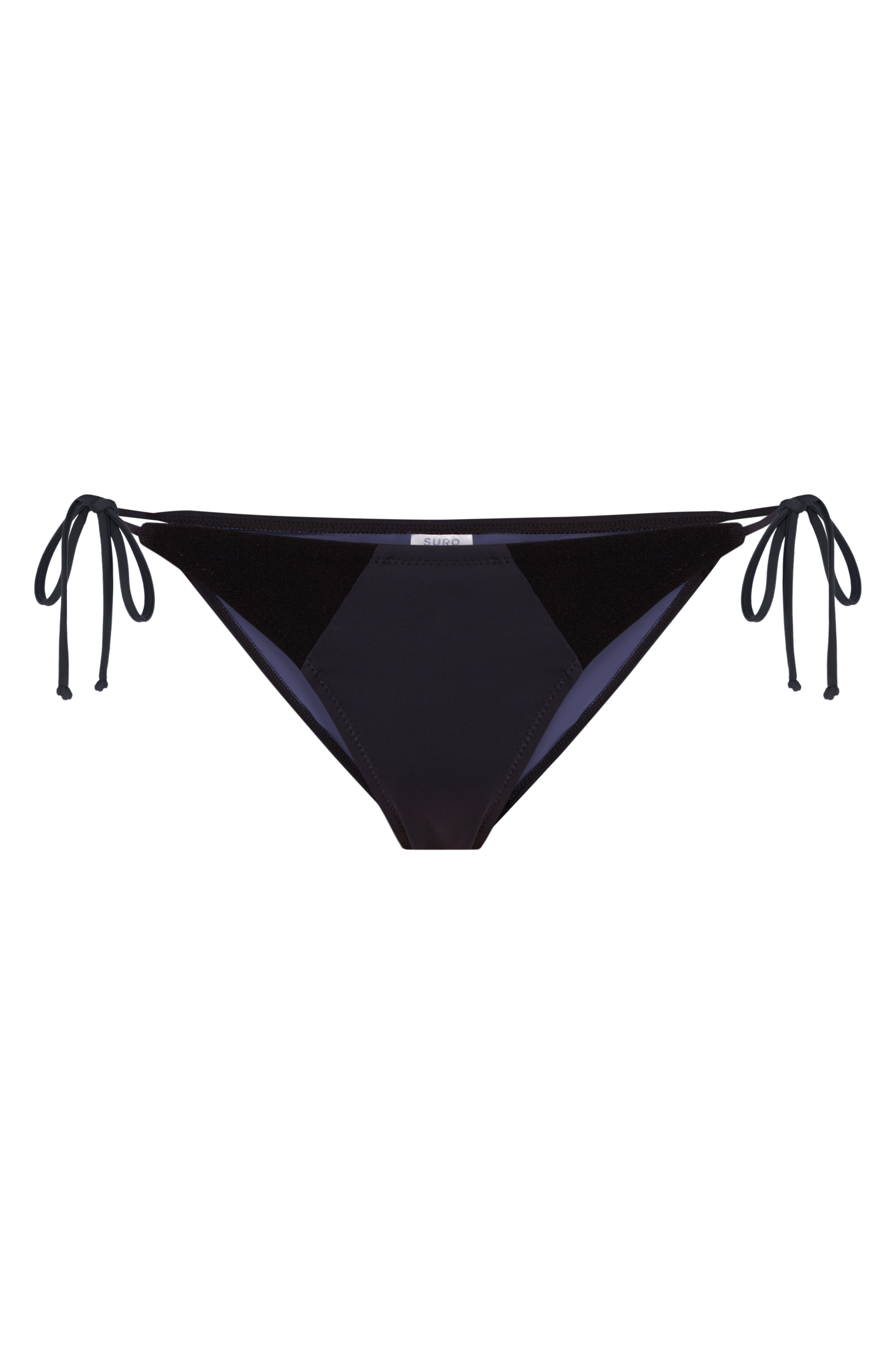 Classic triangle bottom with adjustable side ties, finished with terry cloth side details.